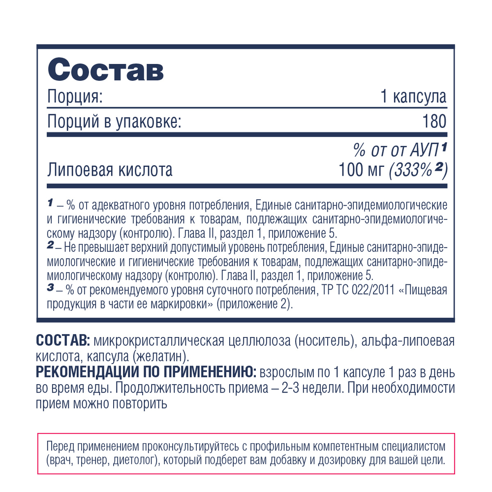 Альфа-липоевая кислота Be First Alpha Lipoic Acid 180 капсул