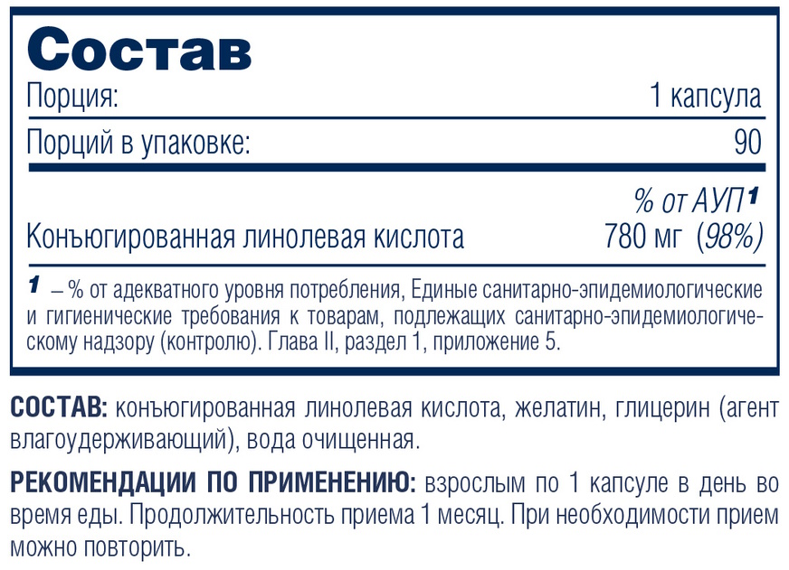 Продукт с высоким содержанием CLA (КЛК – конъюгированной линолевой кислоты) из высококачественного фильтрованного сафлорового масла первой выжимки. Без ГМО.