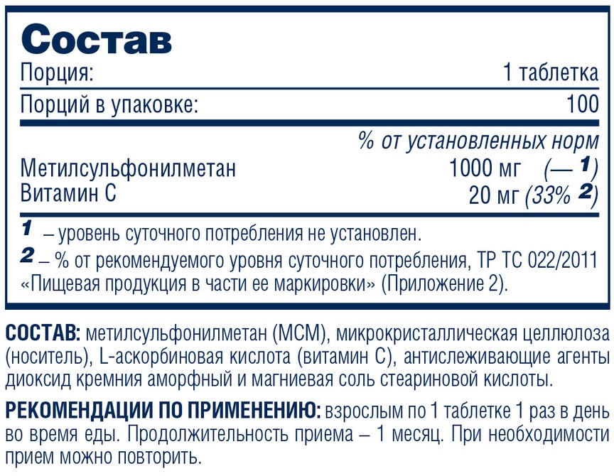 - Тип: MSM (метилсульфонилметан)