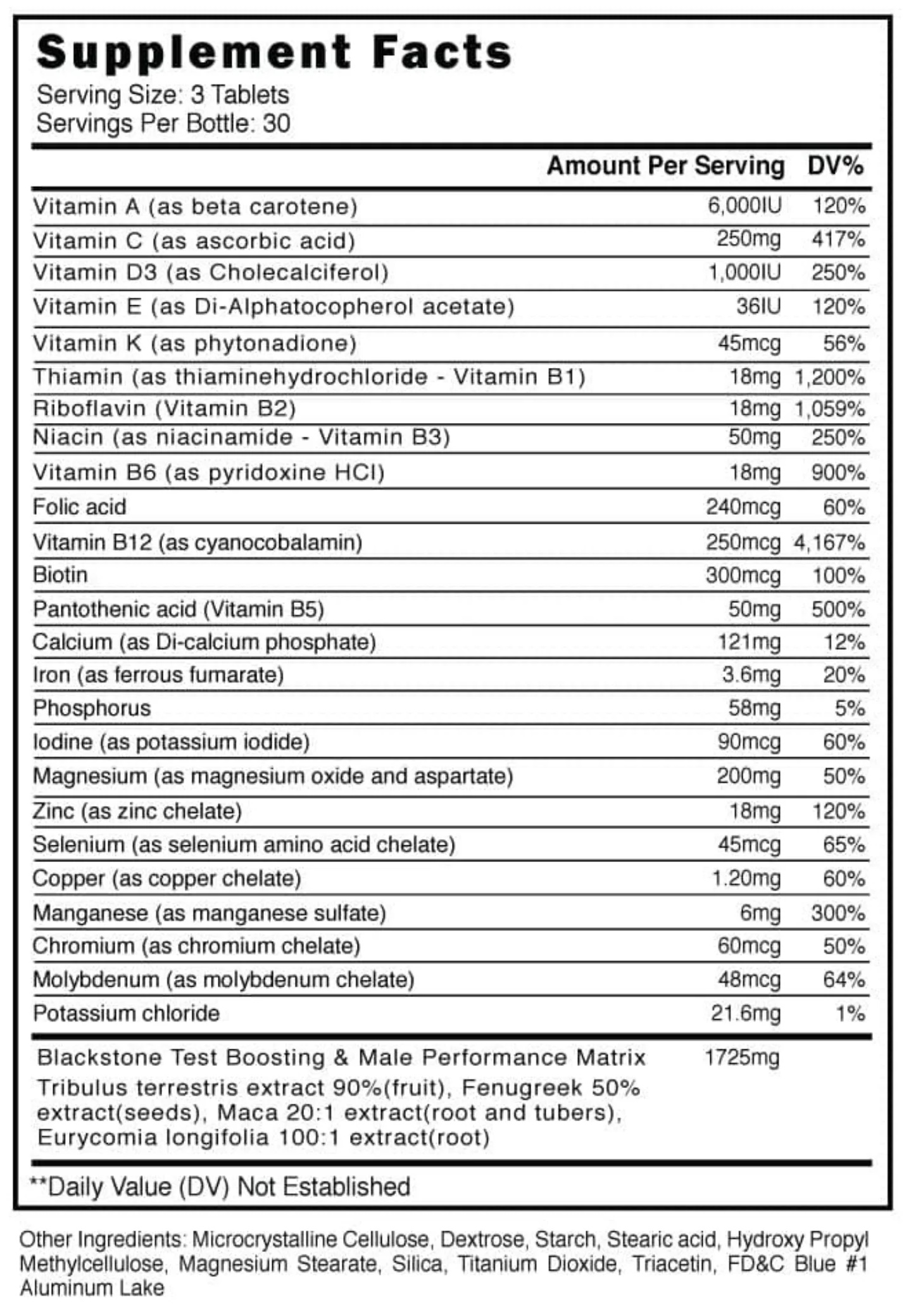 Blackstone Labs Multi — инновационная мультивитаминная добавка, созданная специально для мужчин. Эта гремучая смесь содержит не только кучу полезных витаминов и минералов, но и уникальную формулу для повышения потенции и мужественности. Последнюю образуют: