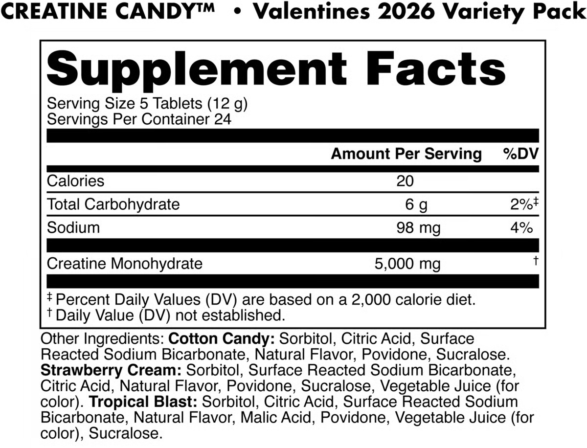Креатиновые конфеты Bucked Up Creatine Candy 120 жевательных таблеток