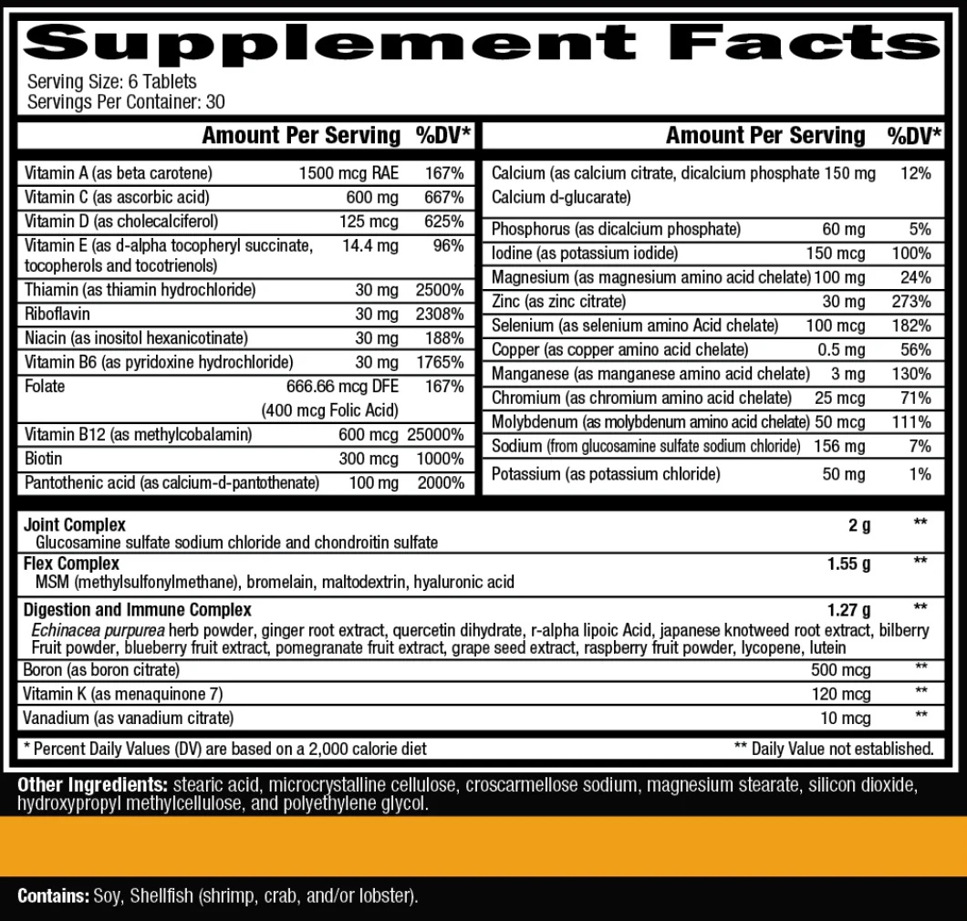 - Размер порции: 6 таблеток