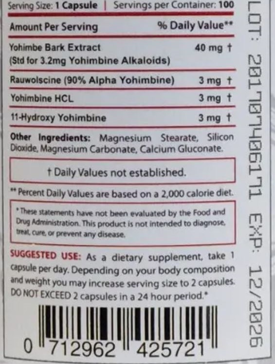 Йохимбин Core Labs X Yohimbine Pro 100 капсул