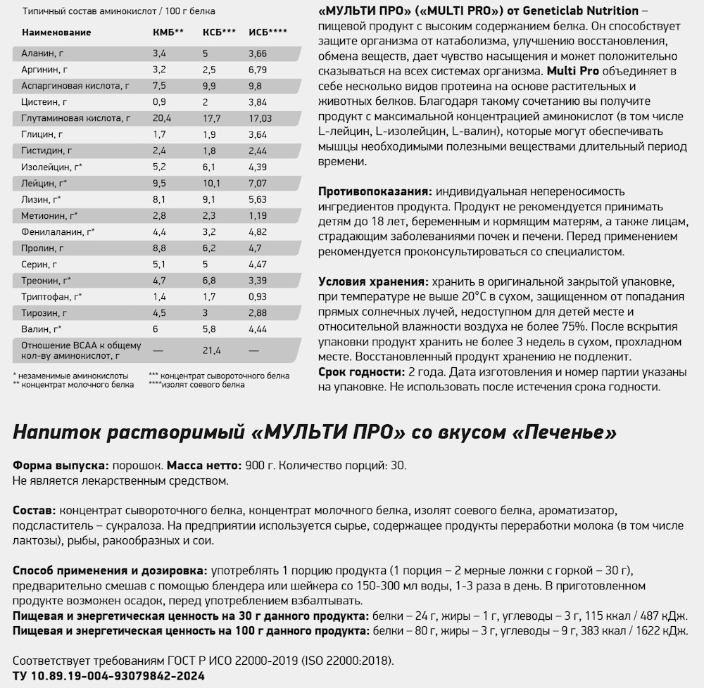 Мультикомпонентный протеин Multi Pro от Geneticlab Nutrition имеет уникальный аминокислотный состав благодаря комплексу из яичного альбумина, мицеллярного казеина и сывороточного протеина, в соотношении, оптимального для усвоения организмом.