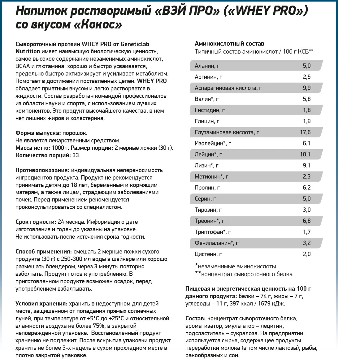 Как принимать Сывороточный протеин-концентрат GeneticLab Nutrition Whey Pro 1000 грамм