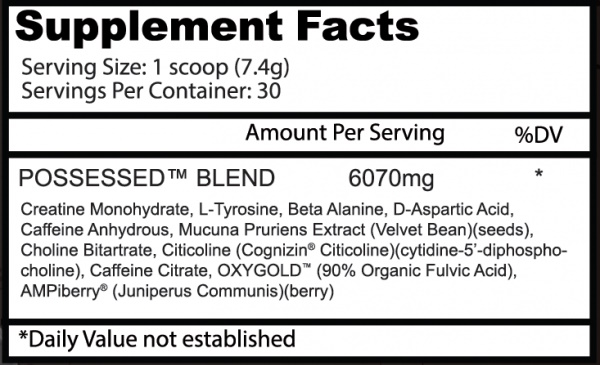 Но безумие ждёт только по части энергетики и работоспособности добавки, состав Possessed вполне логичен: