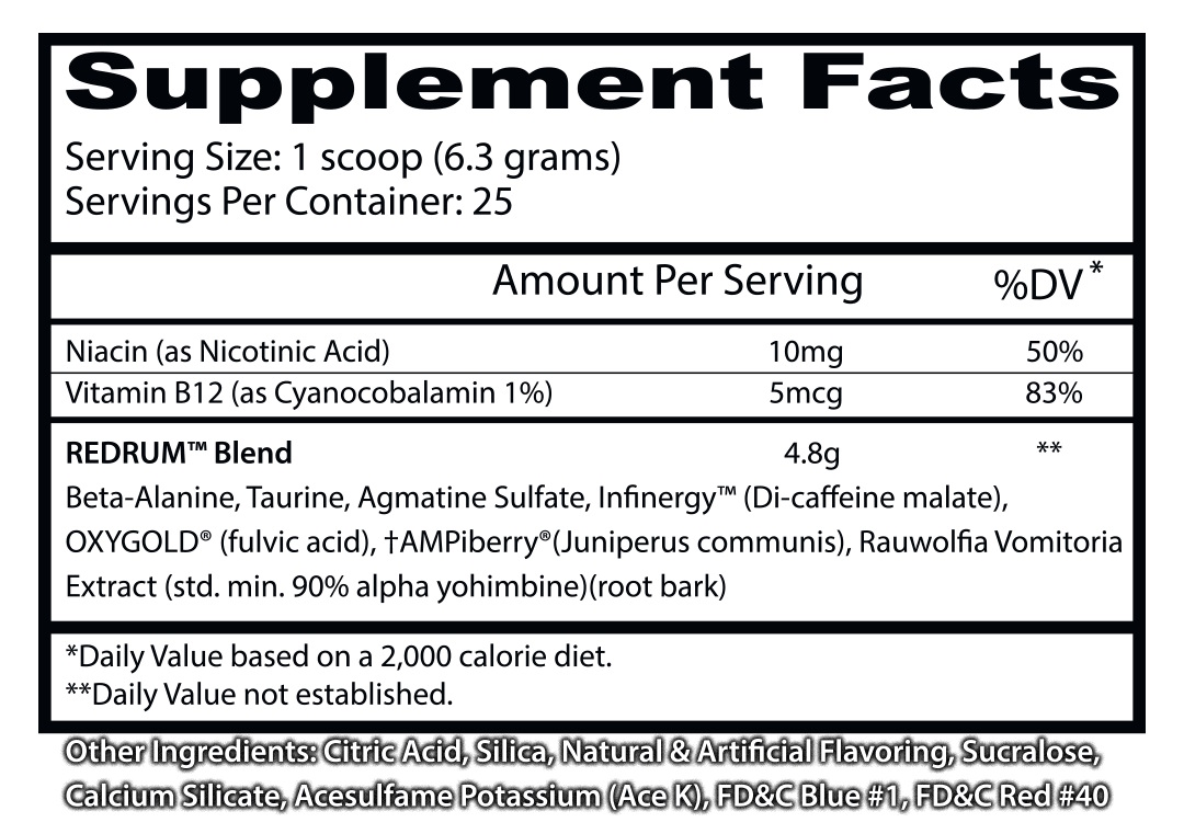 Redrum от Insane Labz - инновация в мире спортивного питания - предтренировочный комплекс премиум-класса из семи компонентов, три из которых - запатентованные формулы компании. По отзывам на сайте производителя, а также на зарубежных форумах, 99 из 100 атлетов дают положительную оценку продукту, вне зависимости от рода физических нагрузок. Оценка происходила на независимых ресурсах.Redrum от Insane Labz - мощнейший бустер окиси азота со стимулирующим эффектом без запрещенных веществ в составе. В основе продукта возбудители ЦНС, нейролептики, термогенные агенты, а также анаболические донаторы, поддерживающие антикатаболическую среду.