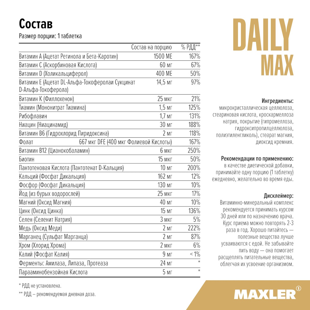 Состав Мультивитамины Maxler Daily Max 120 таблеток