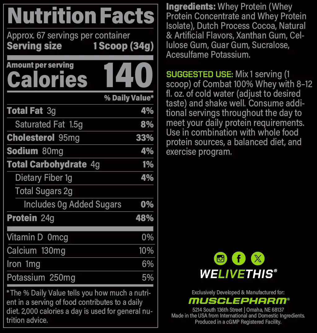 Всем известно, что белок – это фундаментальный материал для построения сухой мышечной массы. Его можно получить из традиционных продуктов, таких как курица, рыба, яйца и так далее. Но сколько нужно съесть этих куриных грудок, чтобы полноценно обеспечить мышцы белком и как при этом усвоить его в полном объёме? Сохранить баланс пищеварительной системы и дать мышцам питание высокого качества можно проще, если купить MusclePharm Combat 100% Whey (2269 гр.).