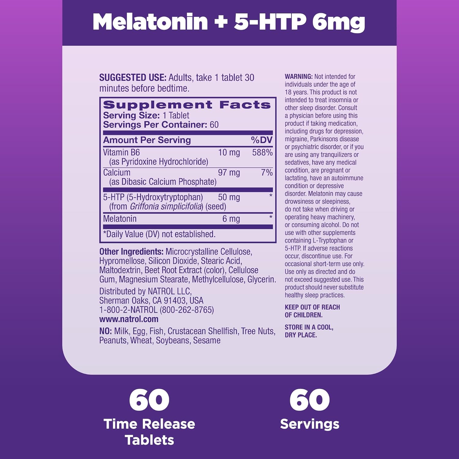 Мелатонин Natrol Melatonin 6 мг + 5-HTP Time Release 60 таблеток