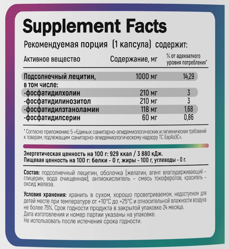 Подсолнечный лецитин NAWI Lecithin Sunflower 1000 мг Softgels 60 капсул