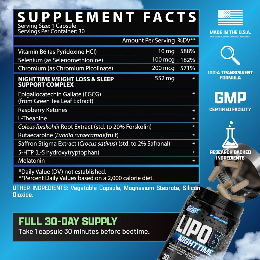 Ночной жиросжигатель Nutrex Research Lipo 6 Nighttime 30 капсул