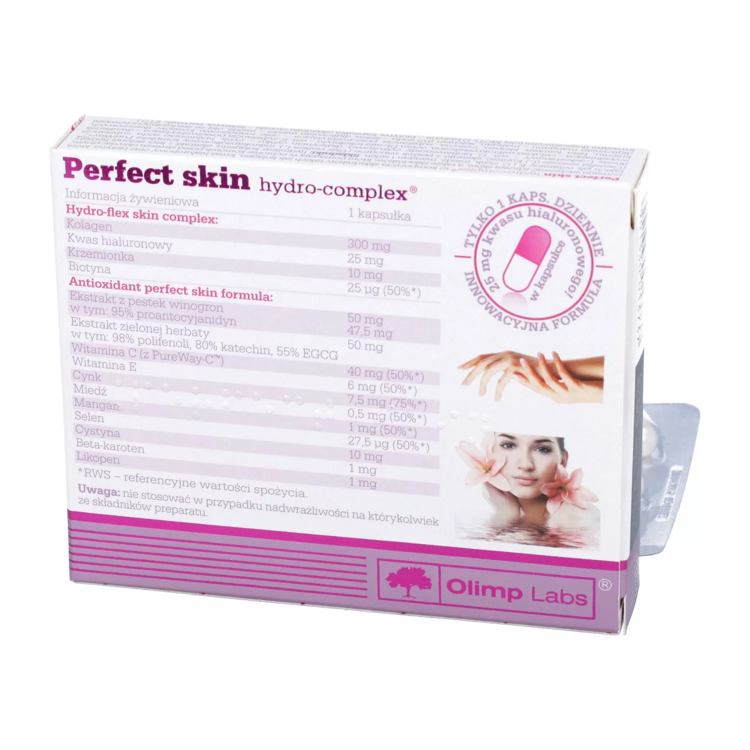Купить комплекс Perfect Skin Hydro-Complex стоит девушкам и женщинам любого возраста, поскольку этот продукт обеспечивает организм необходимыми ресурсами для поддержания здоровья кожи, ногтей и волос. Благодаря идеальной усвояемости природных компонентов комплекс не влияет на работу желудка, при этом оптимизирует уровень влаги в кожных клетках и улучшает общее самочувствие.