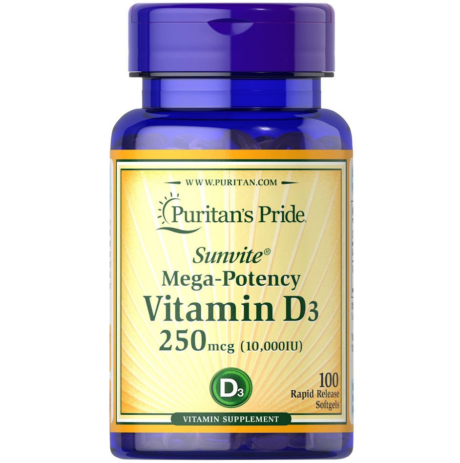 Витамин D3 Puritan's Pride Vitamin D3 10000 IU Softgels 100 капсул