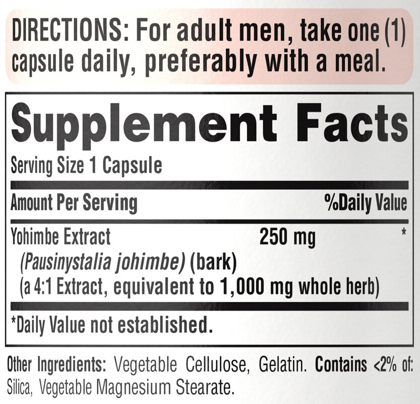 Йохимбин Puritan's Pride Yohimbe Extract 1000 мг 50 капсул