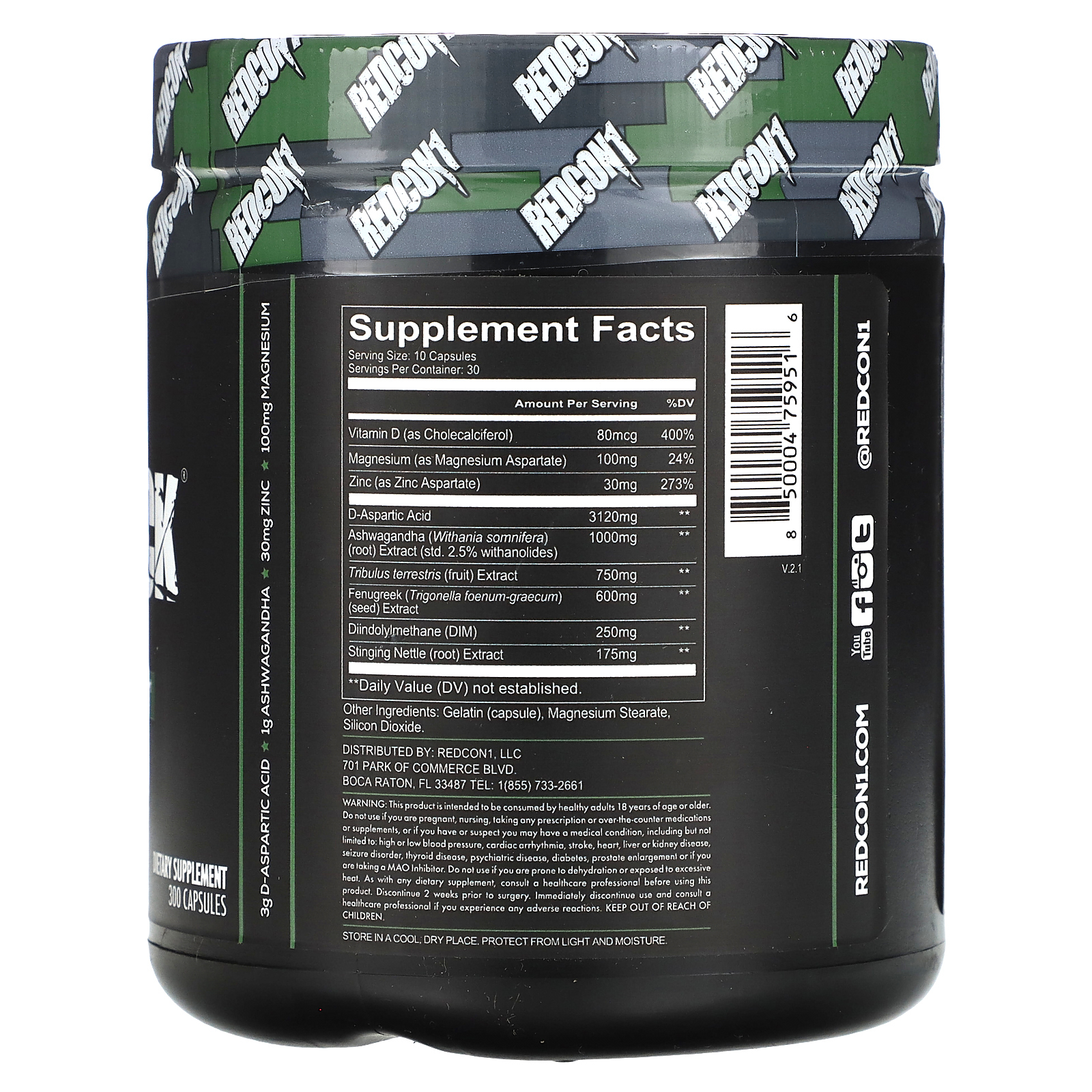 Бустер тестостерона Redcon1 Boom Stick 300 капсул