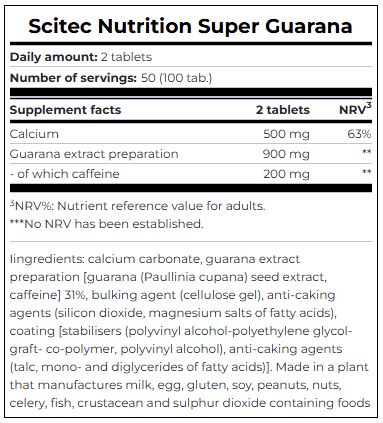 Гуарана Scitec Nutrition Super Guarana 100 таблеток