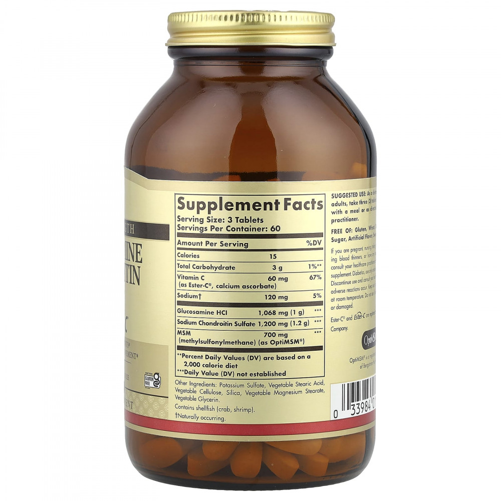 Глюкозамин, хондроитин и МСМ Solgar Glucosamine Chondroitin MSM Ester-C 180 таблеток