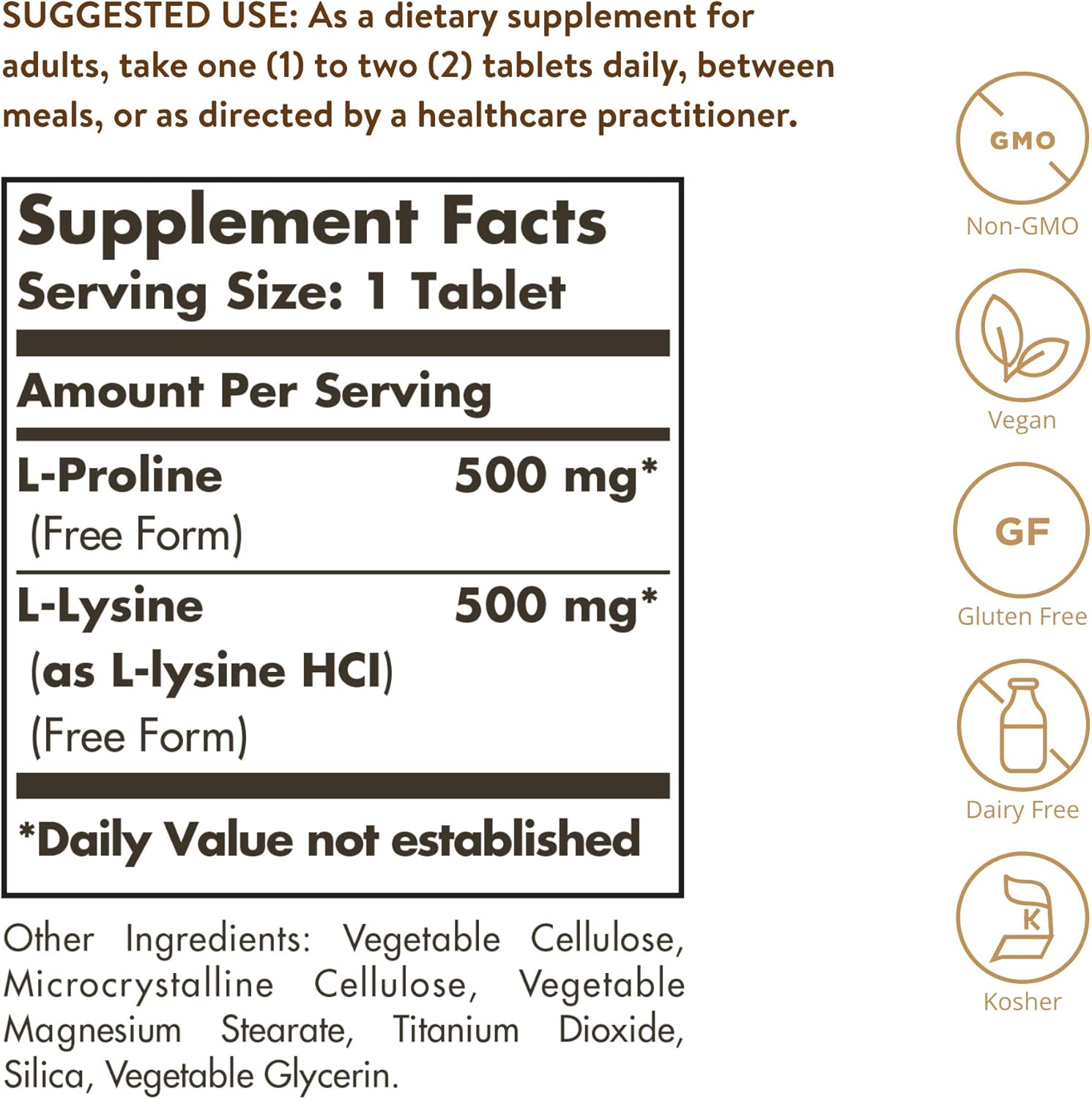 L-пролин и L-лизин Solgar L-Proline L-Lysine 500 мг/500 мг 90 таблеток