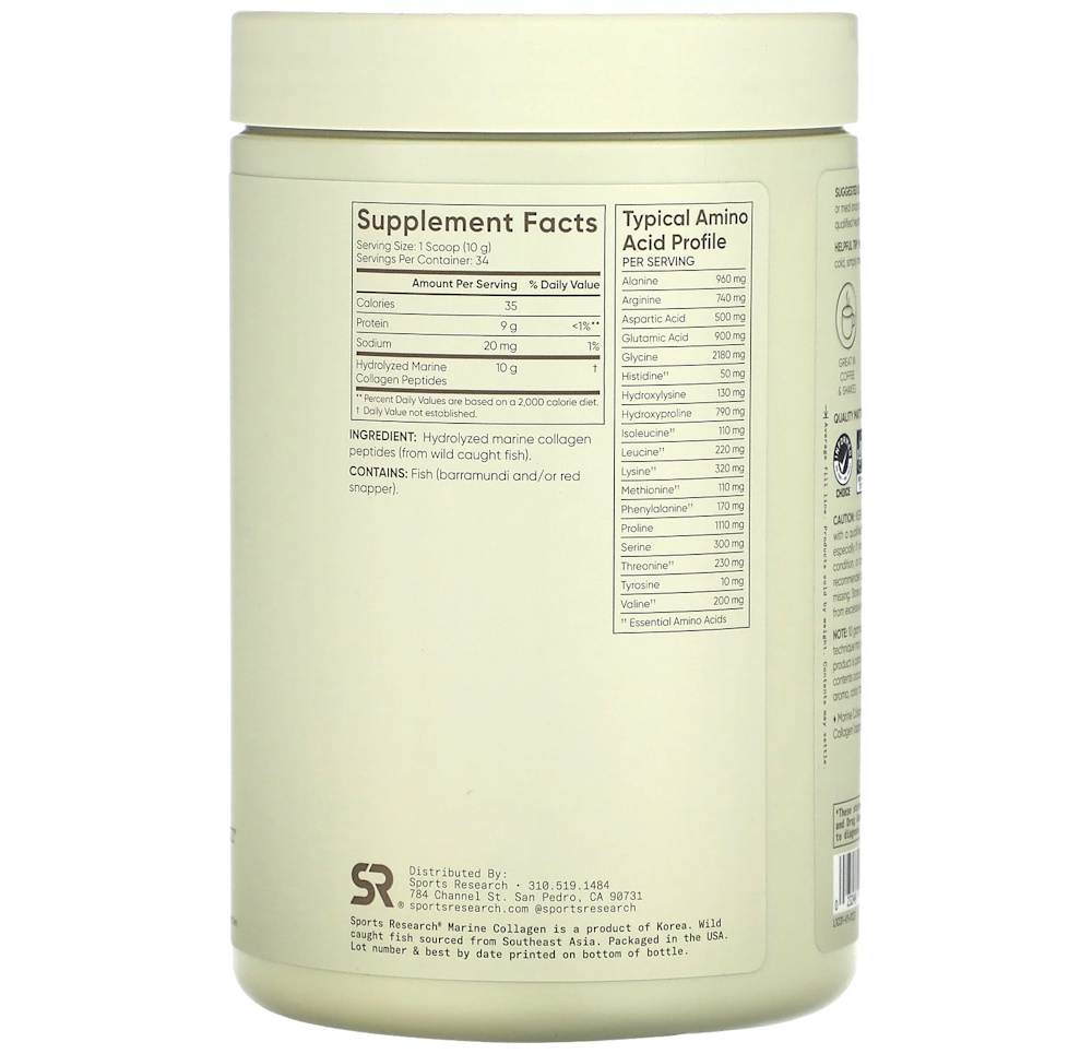 Пептиды морского коллагена Sports Research Marine Collagen Peptides 340 грамм