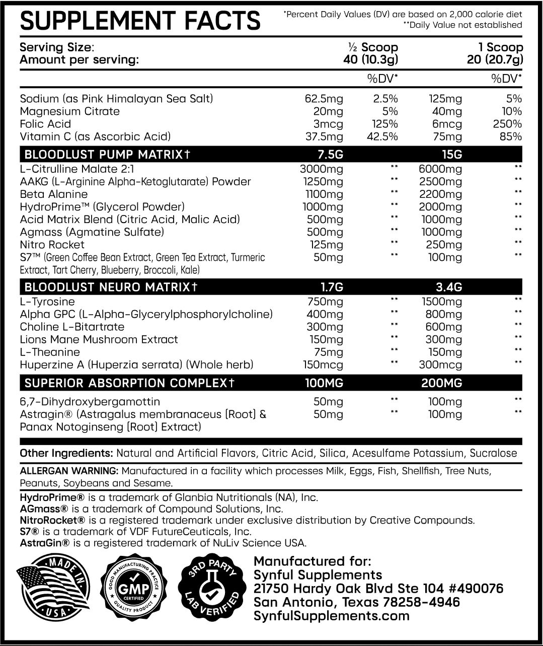 Пампилка-ноотроп Synful Supplements Bloodlust Neuro 414 грамм
