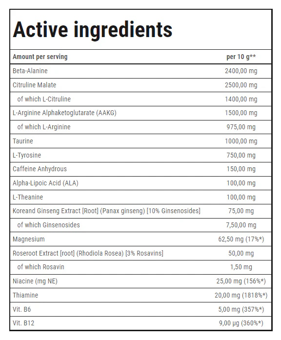 - Тип: Предтренировочные комплексы