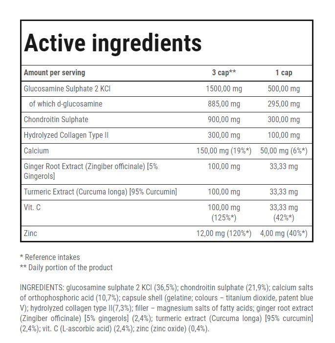 Сочетание в препарате Joint Therapy Plus активных компонентов, то есть глюкозамина, MSM хондроитина и растительных экстрактов предоставляет возможность укрепить во многих направлениях суставную систему.