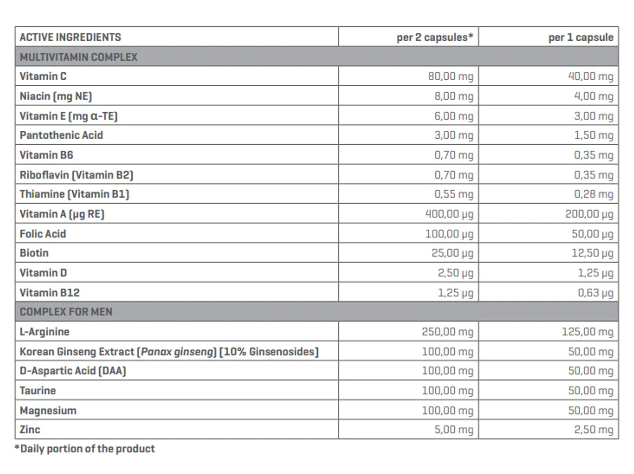 - Размер порции: 1 капсула
